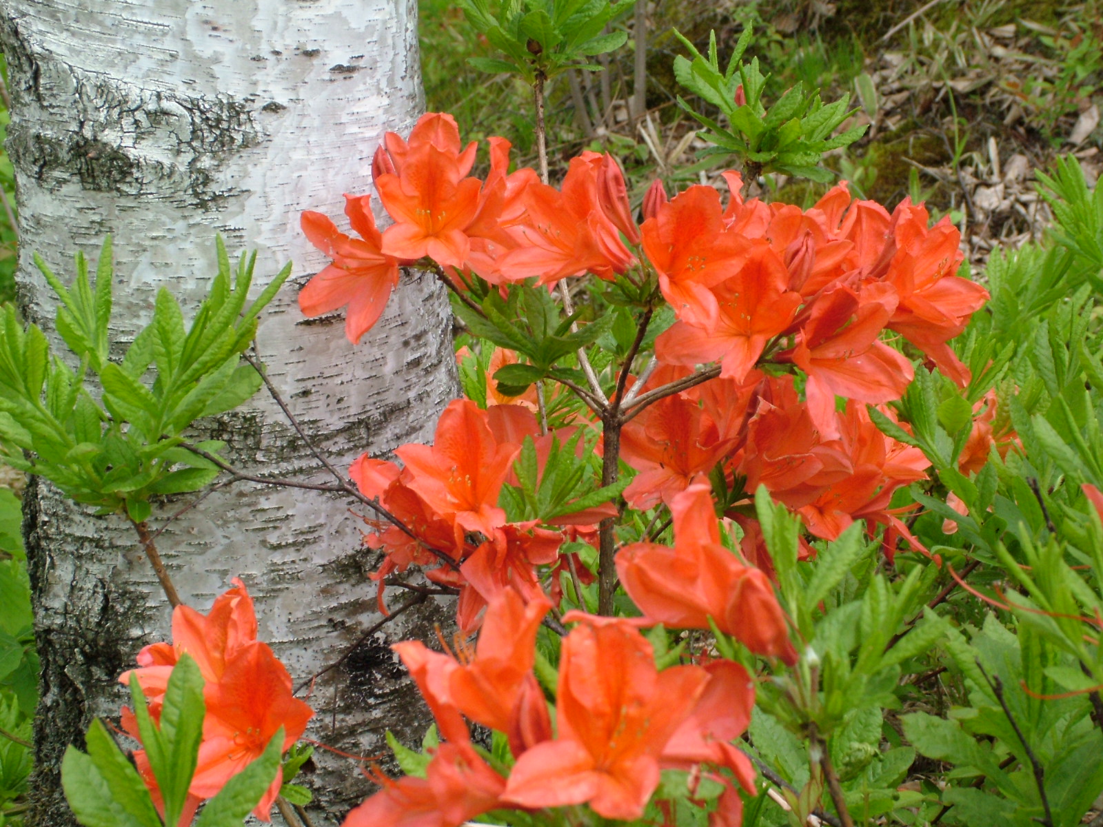 6月2日に長野地方気象台は関東甲信越地方に梅雨入りを発表しました。 今年は平年より6日、昨年より20日も早い梅雨入りです。 梅雨の晴れ間の6日には、八ヶ岳四季の森別荘地販売センター周辺では早くもエゾハルゼミの 鳴き声が確認され今年の夏到来を知らせてくれました。 初夏の高原を朱紅色に彩る「レンゲツツジ」が四季の森別荘地内や八ヶ岳美術館の庭に鮮やかに 自己主張しています。 里山一帯の新緑と白樺林に咲くレンゲツツジのコントラストは「四季采豊潤」そのものの ヒトコマです。 レンゲツツジは枝の先端にかたまって花をつける様相から、ハスの花を思わせるため 「蓮華ツツジ」と呼ばれることの由縁のようです。 特性としては酸性土壌に適しており、八ヶ岳山麓原村の林地は大昔の火山灰土でもあり一帯に 多く自生しています。 昭和49年12月1日、原村は村内の林地に沢山自生するこの花を村花に制定しています。 朱紅の花色からは力強いエネルギーを感じ、また優しさをも感じさせる仄かな香りを 楽しませてくれます。 四季の森のオーナー様、土地やモデルハウス見学のお客様などレンゲツツジの群生地を 観光されたい方、四季の森販売管理センターにお立ち寄り下さいレンゲツツジの楽しめる 場所をご案内いたします。 参考文献 原村詩(上巻) 中村一心著 花歳時記