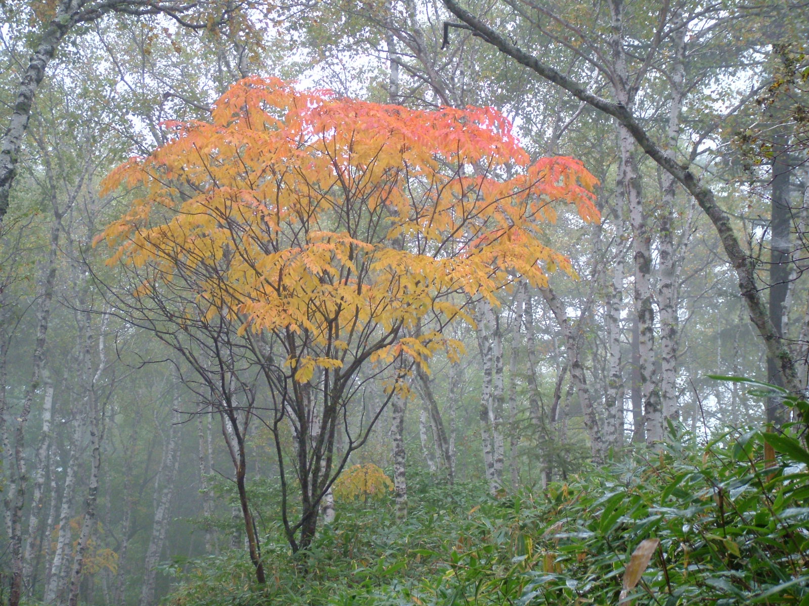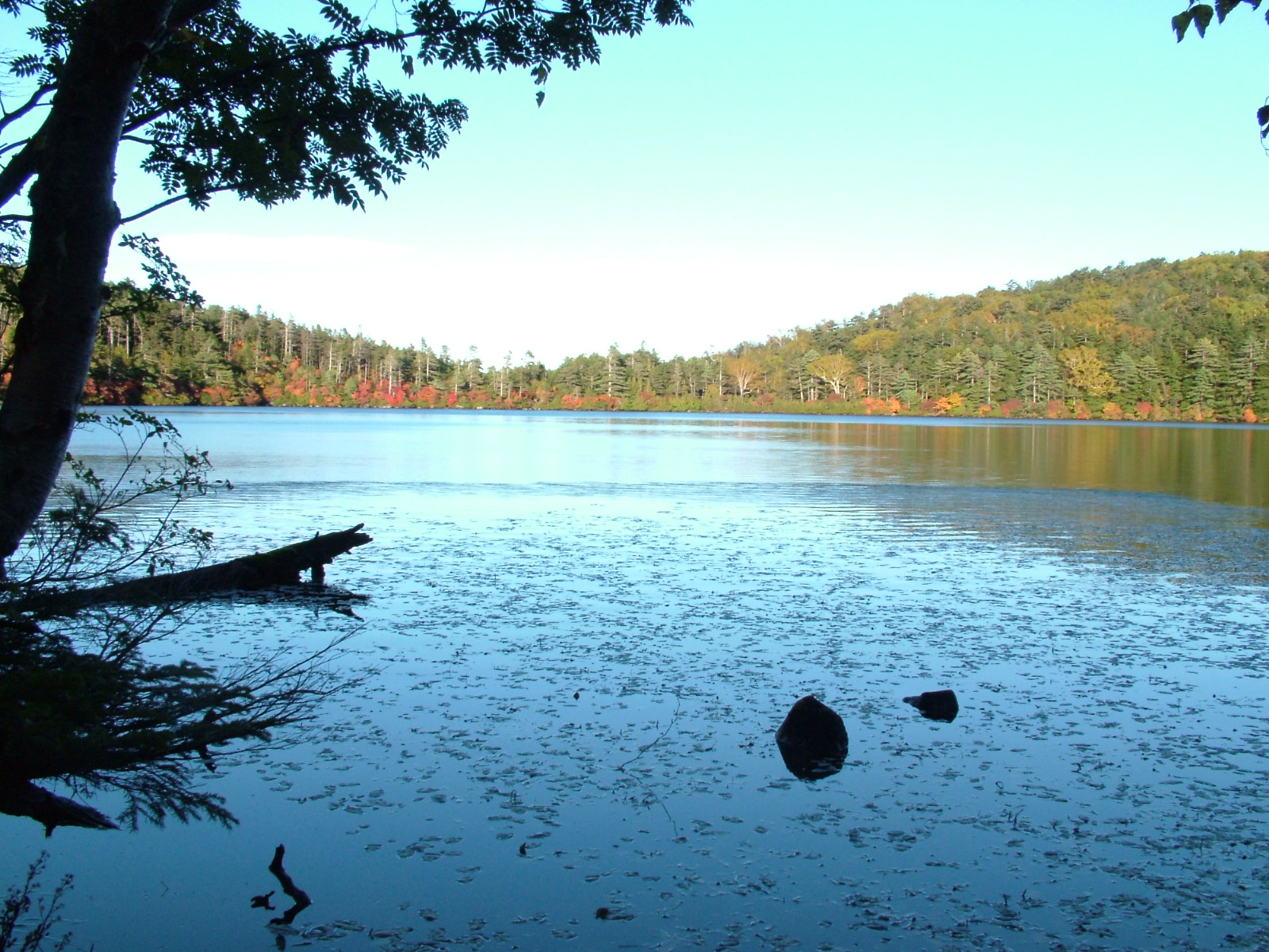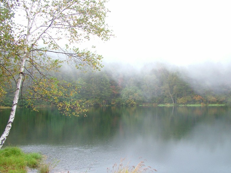 朝から秋雨けぶる久々の公休日、珍しく妻と波長が合い 「小さい秋」 を探しに出かけてみました、目的地は麦草峠 白駒池でしたが途中の気になるところは全て寄り道することに・・・・、意外と身近すぎて三十年あまり昔に行ったきり記憶もおぼろげ、ルートも明確に思い出せませんでしたが適当に走ってみました。 御射鹿池はちょうど雨あがりになり、東山魁夷画伯の白馬ならぬ霧の流れに対岸に白馬の飛ぶ姿を連想するに足る幻想的な別世界の景色を楽しませてもらいました。 奥蓼科も所々濃い霧に見え隠れする山の中腹に点々と紅葉が水玉模様をかもしだし、思わず深呼吸、そのまま上った湯みち街道終点に近い霧の白樺林の中に見つけた一本のヌリデの鮮やかなオレンジ色は強烈な自然のキャンバスでした。 目的の麦草峠から程近い白駒池(普通車500円の有料駐車場から0.7Km)はシラビソ、ダケカンバ、コメツガなど巨木の茂る原生林のゆるい登り道を抜け下りになると木々の間から2115mの標高には予想外の広い湖面が目に飛び込んできましたがこれもまた私の記憶からは消えていました。 15分ほど歩き白駒荘前のビューポイントに到着、防寒対策に一枚余計に着込んでいきましたがそれでもうす寒く、妻が注文した熱いお汁粉は辺りの景色には似つかわないものの美味でした、しばらくの間対岸の水辺に真っ赤に色づき始めた紅葉の写真を撮り歩き(本格装備のアマチュアカメラマン数人は帰り支度でした)周遊コースを諦めて日が陰り始めた湖を後にしました、帰途R299を少し下った所にサンセットポイントとして知られる「日向木場(ひなたこば)展望台」のあずま屋があり、雨上がりの水蒸気が眼下に夕焼けの雲海をしつらえ乗鞍高原・北アルプスの絶景を楽しんで帰宅の途に、たくさんの小さな秋に心休まる一日でした。 八ヶ岳別荘地 「四季の森」 から約1時間弱で麦草峠です、駐車場から白駒池までは砂利敷きの登山道が整備されていますが、安全のためパンプス・サンダルは不可です。 本格的な紅葉は中旬が限界と思われますが、詳細お問い合わせは下記へお願いします。 佐久穂町役場八千穂庁舎 TEL 0267-88-2525 Email:office@town.sakuho.nagano.jp 白駒荘(白駒池湖畔) TEL 090-1549-0605 Email:shirakoma@yachiho-montblnce.co.jp