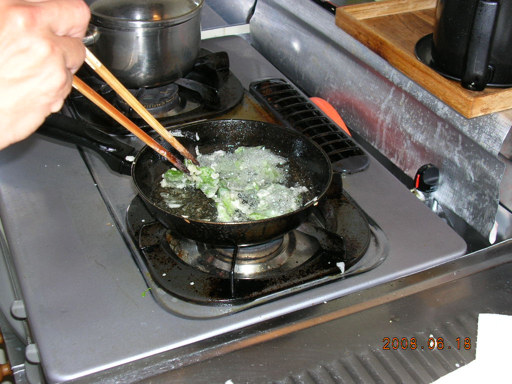 「調理中」 若干強火で揚げたほうがパリッとした食感で良いと思います。