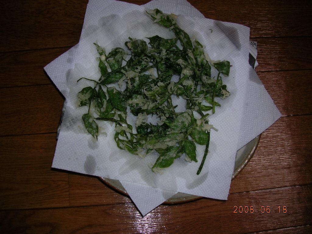 「できあがり!」 開ききらない新芽のほうが美味しいようですが、多少開いていても香ばしくて驚きの美味しさでした。