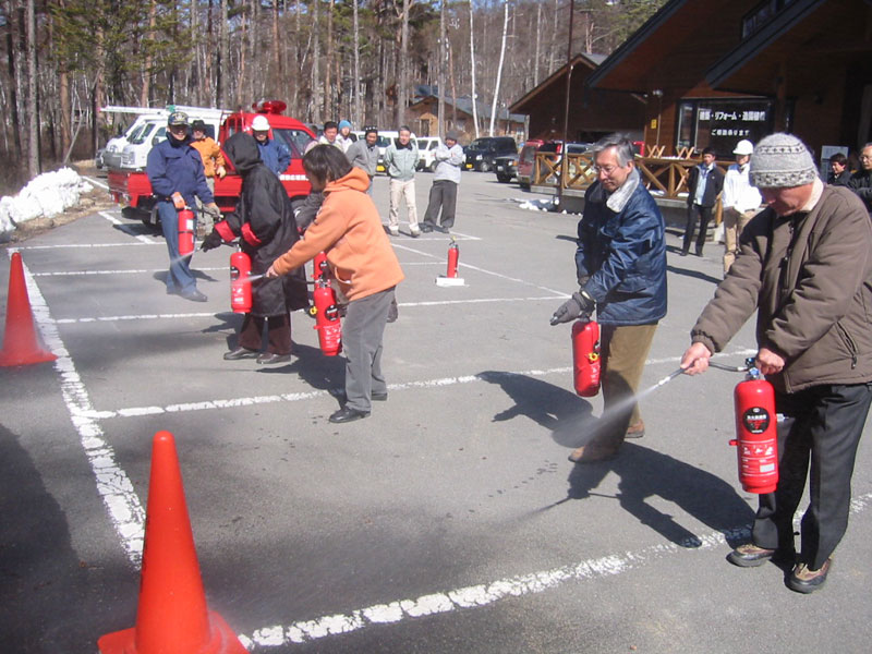 少し遅れましたが全国火災予防週間にちなみ昨日、四季の森別荘地では定住のオーナー様をはじめ、エリア内で工事中の提携業者の皆様を対象に消防訓練を実施しました。 諏訪広域 原消防署員の分かりやすい指導のもと、交代で訓練用の水消火器や消火栓を実際に使って放水を体験するなど臨場感あふれる訓練でした。 あってはならない火災ですが、万が一のその時に備え冷静に対処できるよう冷たい風の中みんな真剣に取り組んでいただきました。 寒い中参加いただきましたオーナーの皆様、改めてありがとうございました。 中でも積極的に体験いただいた奥様方には大変心強く感謝致します。 かけがえの無い 「生命」 と貴重な財産を守るのは私達一人一人の心がけです。