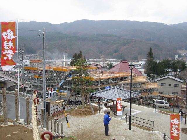 今回の御柱祭に間に合わせる為、木落し坂は公園化され、以前とは様子が少し変わっています。 オーナー様の中にも有料観覧席の抽選に申し込まれ、その結果に悲喜こもごもだと思いますが、観覧席も急ピッチで作られています。