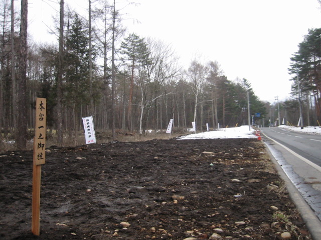 八ヶ岳中央高原四季の森別荘地の北の端(「からまつ平」K・L・M区画の先)から始まる『御柱街道』。 火入式のブログにも書きましたように、この街道沿い、八ヶ岳中央農業実践大学校下の『綱置き場』が御柱祭のスタート地点であり、4月2日からの山出しでは、諏訪大社上社までの延々約20kmを8本の御柱が曳行されていきます。