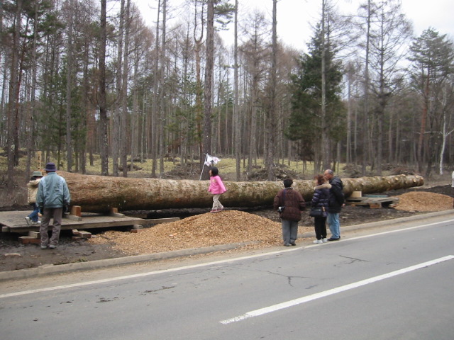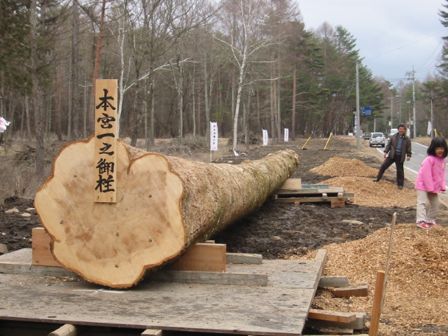 いやぁ、本当に見事なものです。 個人的には、前宮二の御柱(原村と茅野市泉野地区が曳航します)が太くて真っ直ぐで、一番御柱らしい木に見えますがいかがでしょう。