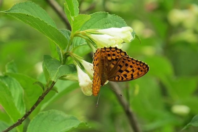 ニシキウツギとヒョウモンチョウ