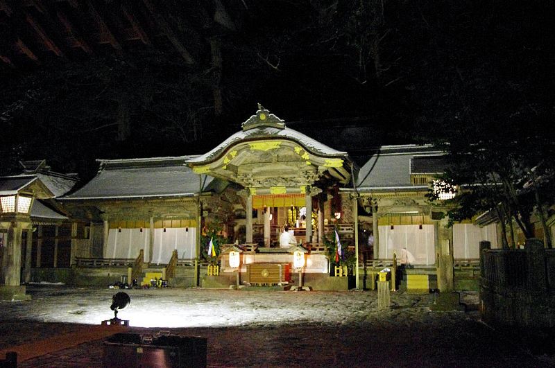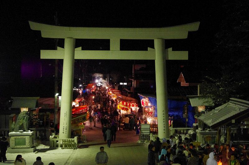 白く闇に浮かぶ大鳥居がよく目立ちます。