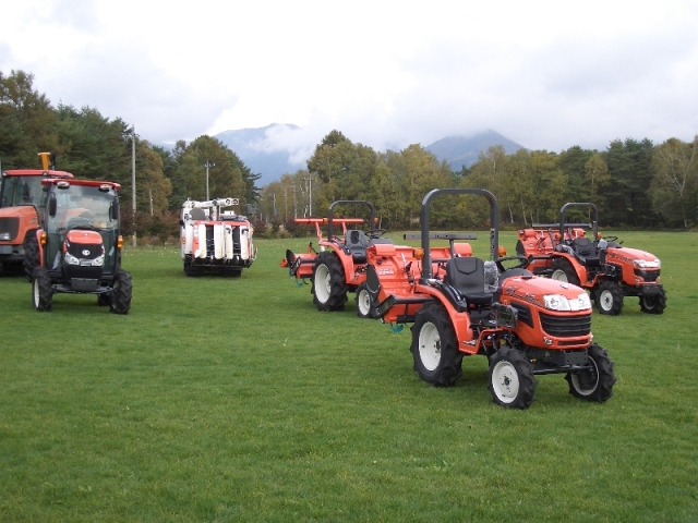 農機具や除雪機の展示。