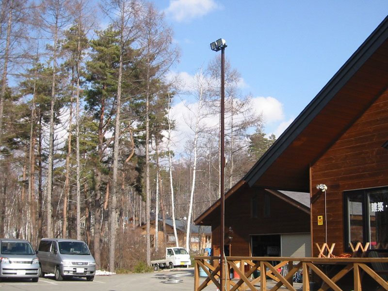 四季の森、現地の冬期夜間における降雪、積雪状況が少しでも早く皆様に確認していただけるよう夜間照明を設置しました。 ライブカメラは従来のままですが、カメラの撮影時刻にあわせてタイマー設定した1Kwの照明灯が1時間に1回点灯するよう新たに、四季の森センターのデッキに6メートルの高さの照明灯を設置9日から稼動を開始しました。 おり悪しく、画像の記録システムに原因不明の故障が発生、まだ回復していないため充分に機能を発揮していませんがこけもも平の画像と同時に見られるセンター画像(PM6:00〜翌朝6:00まで)の画面で取りあえずご覧いただけます。(夜間のためこけもも平の画像は真黒です) システム故障は連休明けには解消する予定ですので、もうしばらくおまちください。