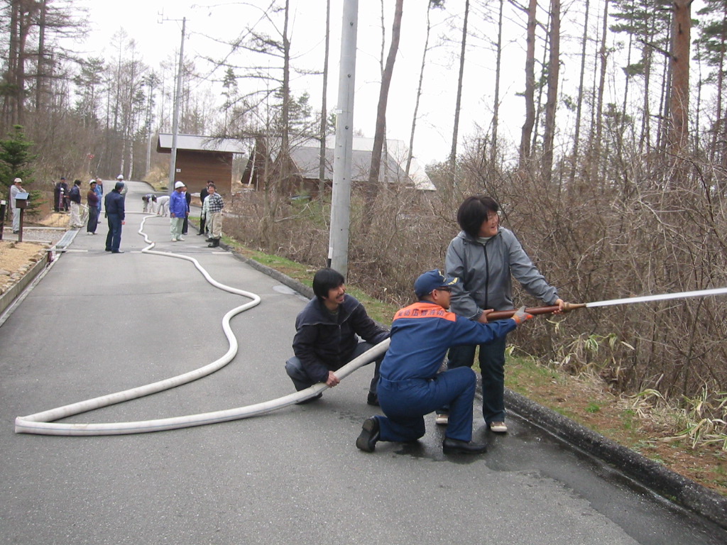 訓練内容 諏訪広域原消防署員に指導して頂きます。 @水消火器による消火訓練 A消火栓による消火訓練 Bその他注意事項