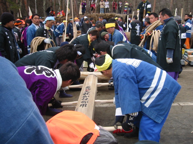 『山出し(木落し・川越し)』や『里曳き』は観客も多く有名ですが、御柱祭にはこのようにあまり報道されない伝統行事がいくつもあります。