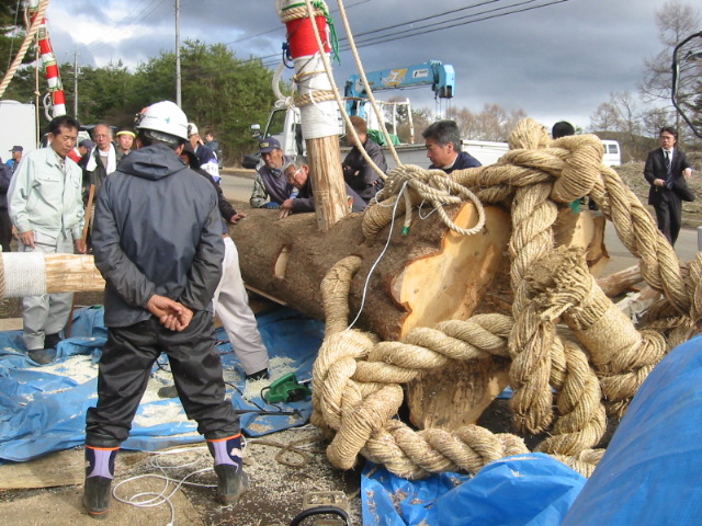 明日から御柱祭の山出しが始まります。 上社に建てられる8本の御柱もほとんど『木造り』が終わり、明日を待つのみです。