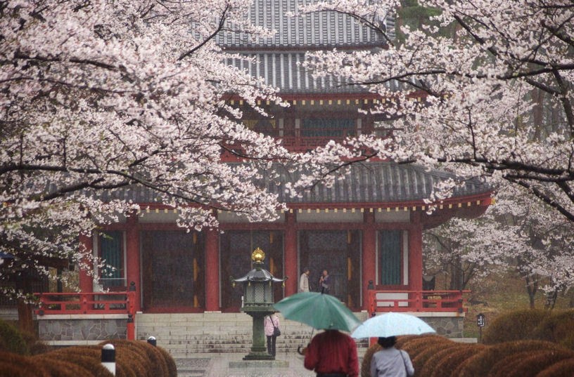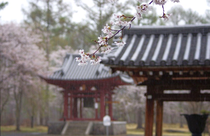 しかし、降る雨に濡れる桜も。