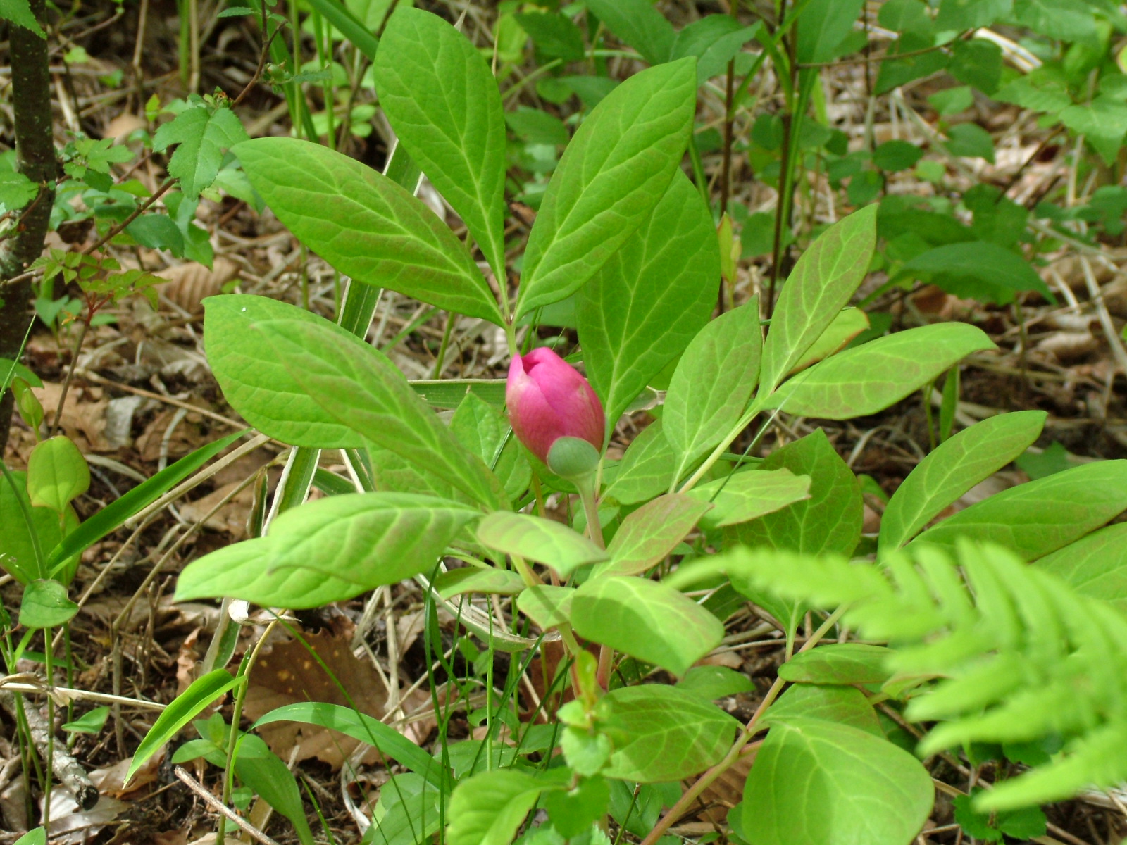 四季の森別荘地内に咲くベニバナシャクヤク 開花 2