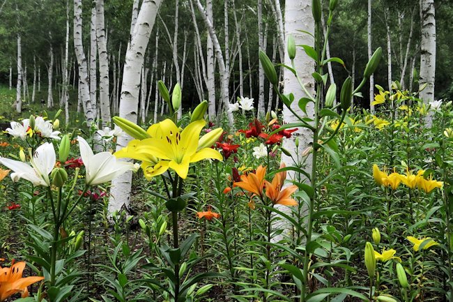 白樺とゆり