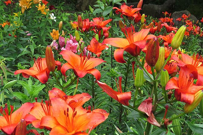百日草とゆりの花