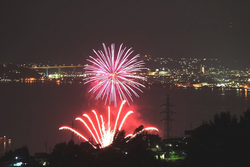 諏訪湖の花火が始まりました。