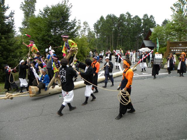四季の森から出発した丸八神社一の御柱。