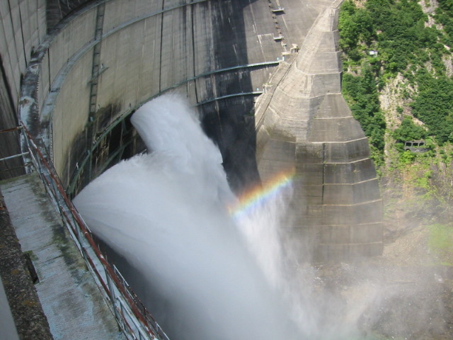 虹がかかる黒部の放水
