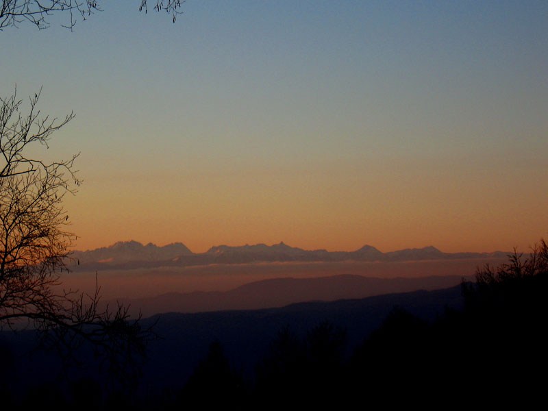 夕焼けの北アルプス (こけもも平より H18.12.11撮影)