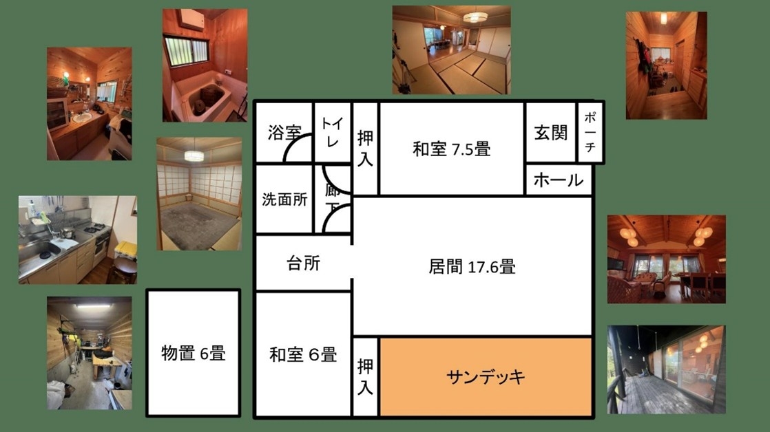 ウッドデッキのある平屋建て!広々リビング、和室には掘りごたつ付き♪