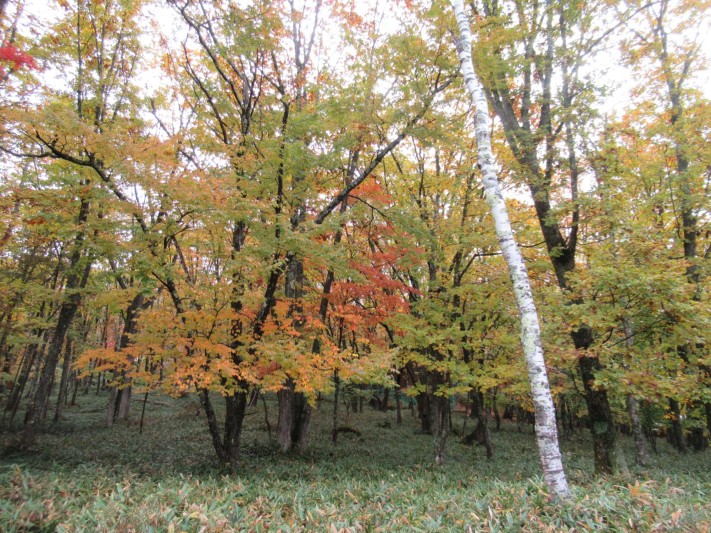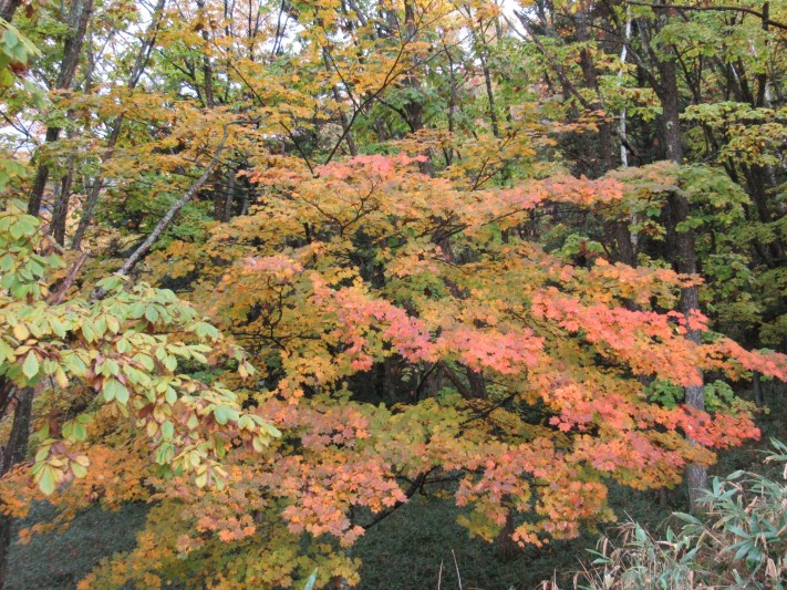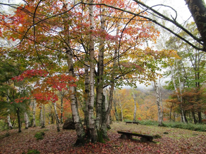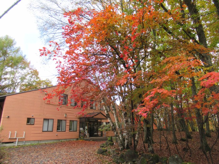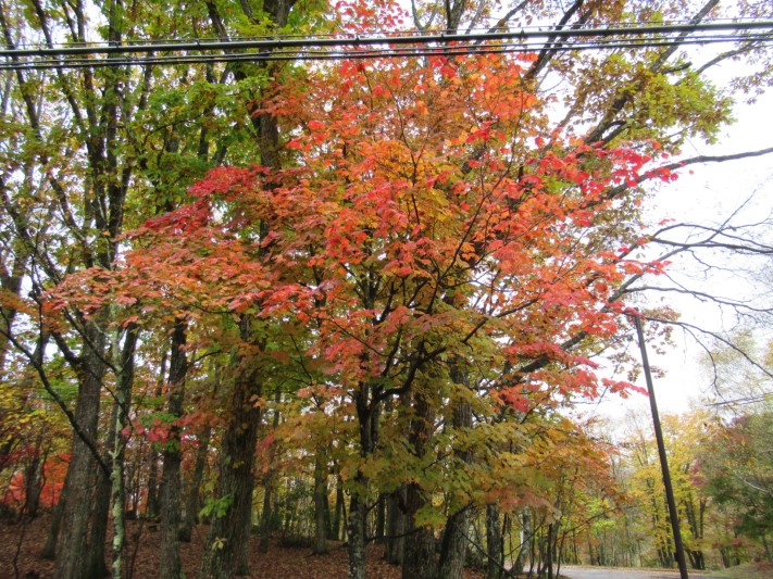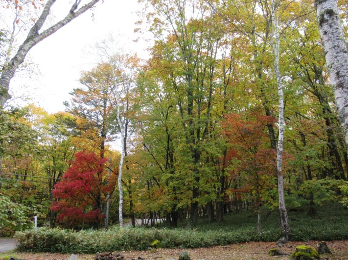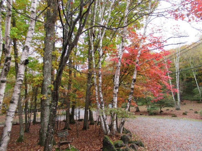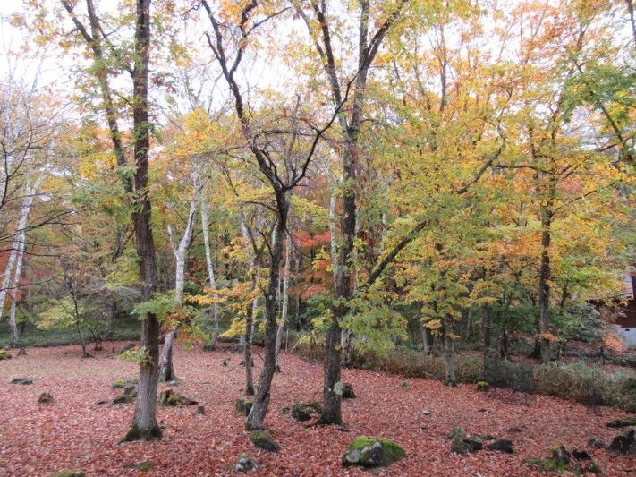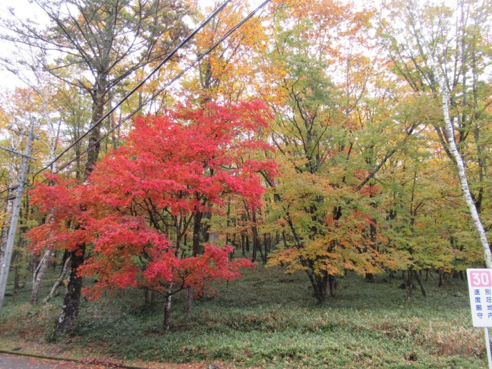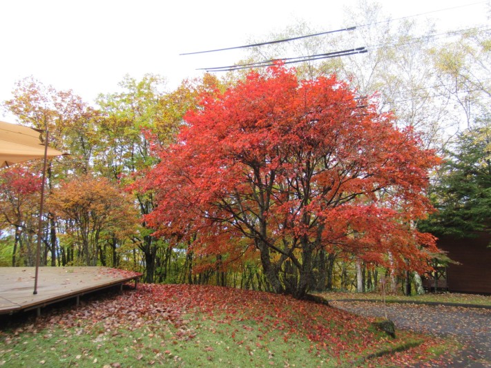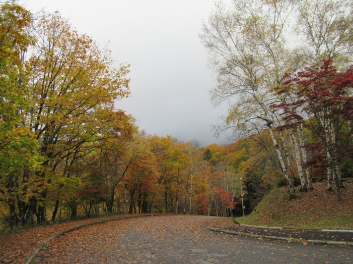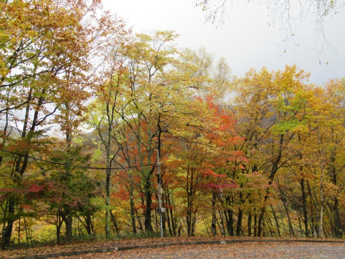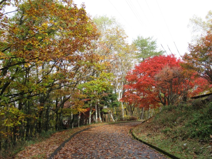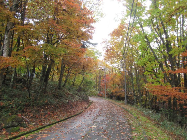紅葉も終盤 雨の為落ちた たくさんの枯れ葉が 道路に張り付いています。