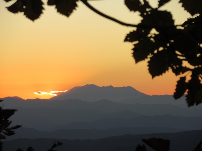 昨日 16時55分頃 御嶽山横に沈む夕日を見ようと向かいましたが あっと言う間に沈み間に合いませんでした。でも綺麗でした。