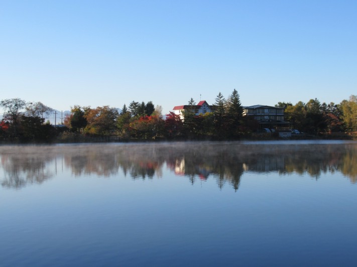 暖かい水面に 冷たい空気が流れ込む事で発生する霧の一種。