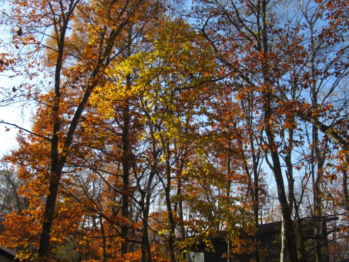 今日もきれいな 蓼科山が見えますが 毎日 北風が吹き 紅葉の終わりを速めています。