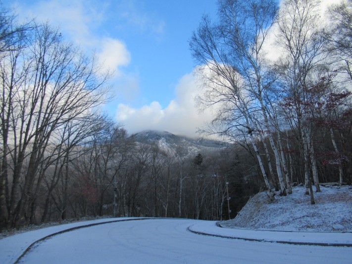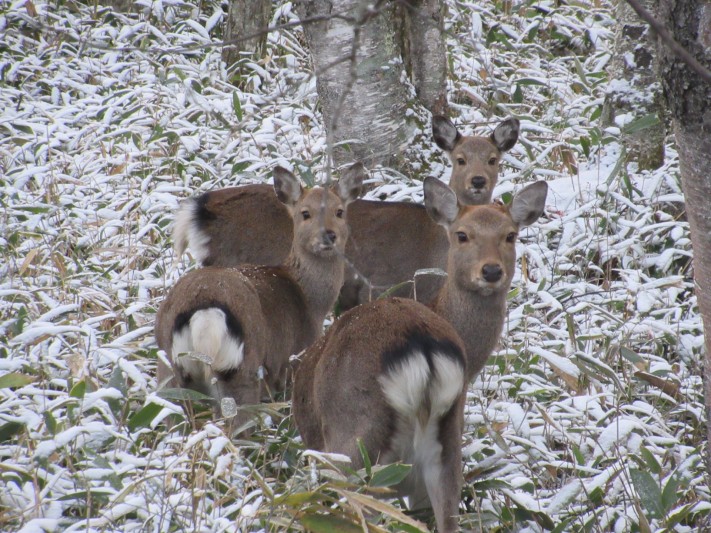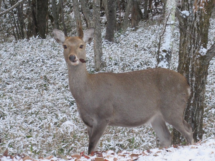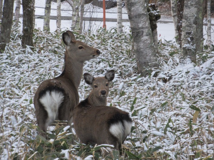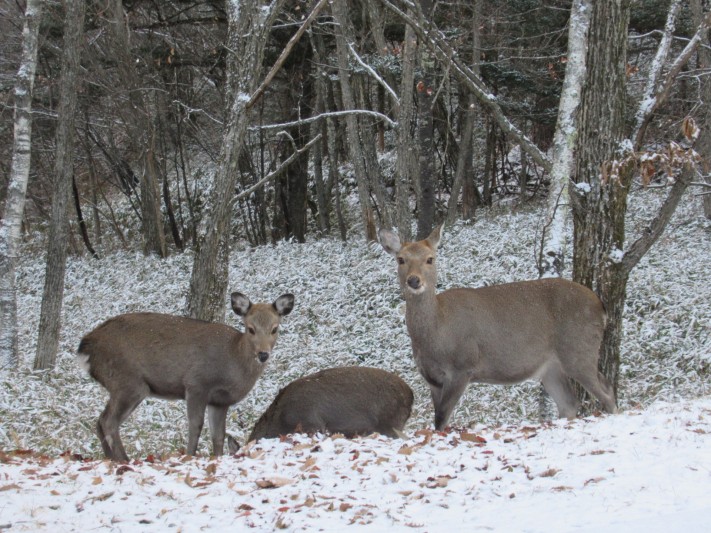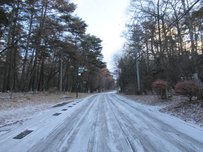 今朝は 非常に寒く 積雪はたいした事ではありませんが道路は白くなっています。
