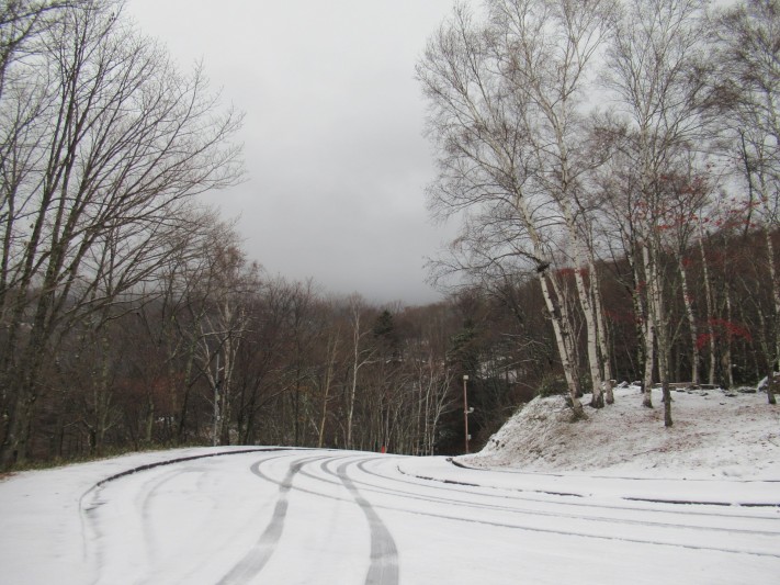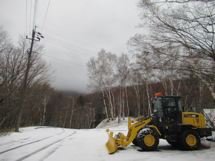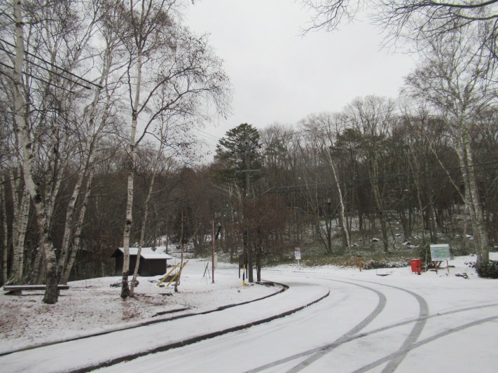 現在 雪から雨に変わったせいか 水分をたくさん含んだ雪 積雪 管理棟周辺で 3cm程度です。