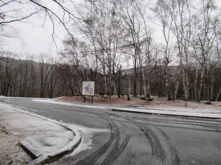 通勤時 プール平付近から 道路が白くなり 別荘に着く頃は 雪から雨に変わっていました。
