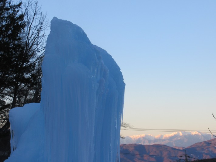 20年以上前から 川の水を引き噴水として 冬は氷柱となります。