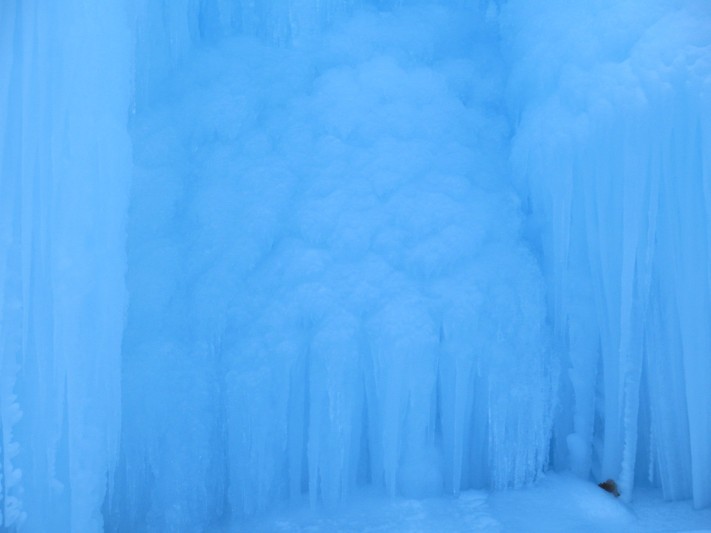 今年は例年になく寒く 横が全部つながり 高い所では 10メートルはあります。