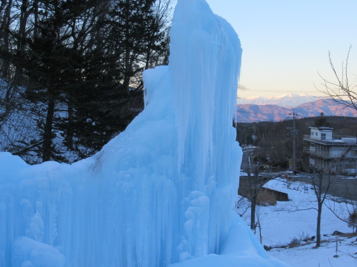 ビーナスラインを登ってきますと 道路からも見える 見応えある 氷柱になっています。