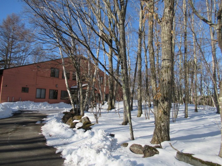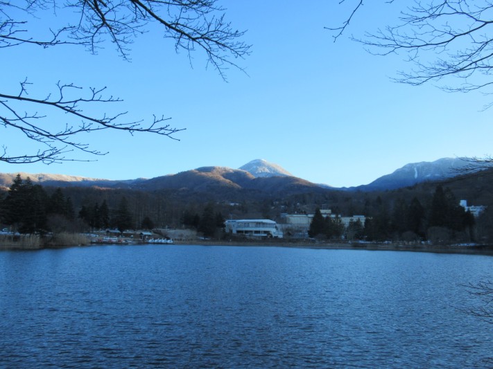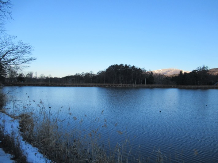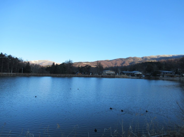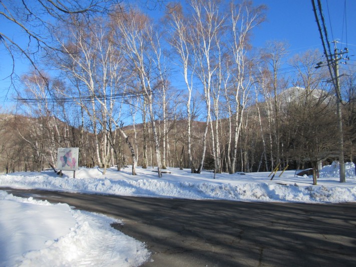 空は晴れ渡り 薄っすら雪化粧された蓼科山が綺麗に見えます。
