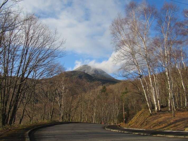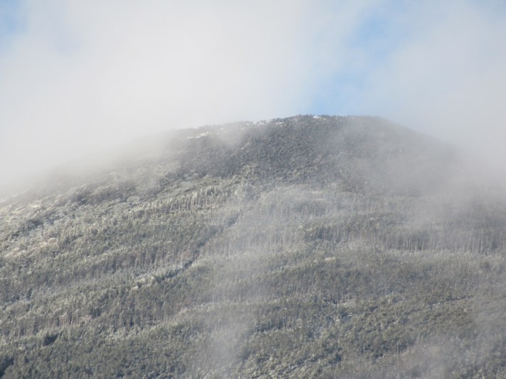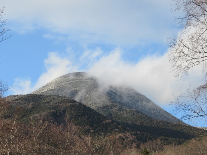 青空が出ていますが 蓼科山の頂上を雲が 素早く通り過ぎています。