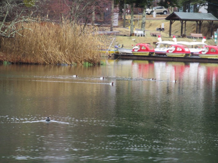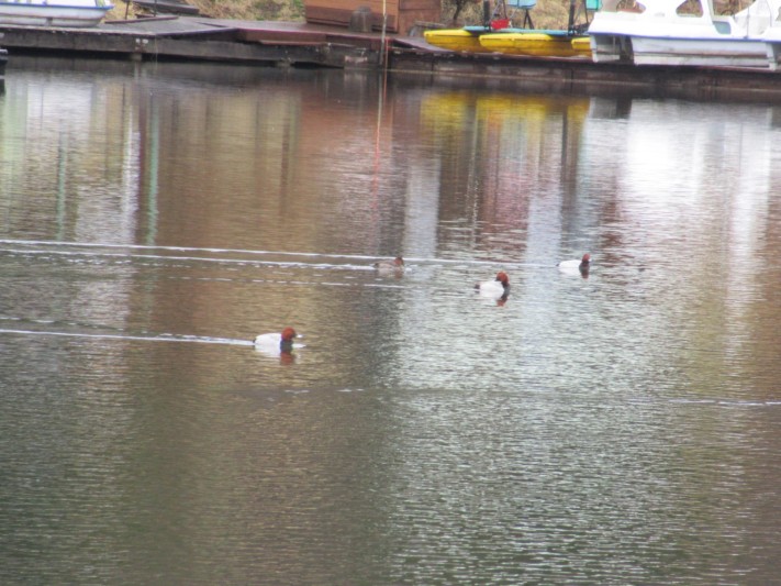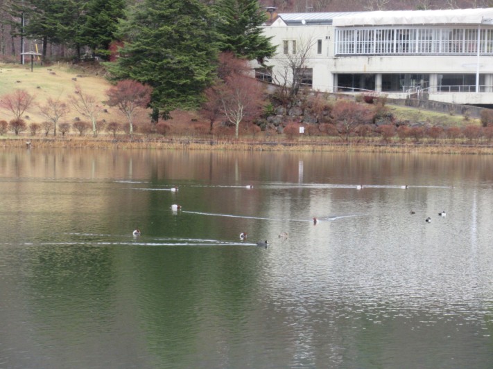 たくさんのホシハジロが静かに泳いでいました。