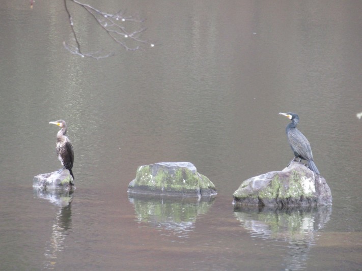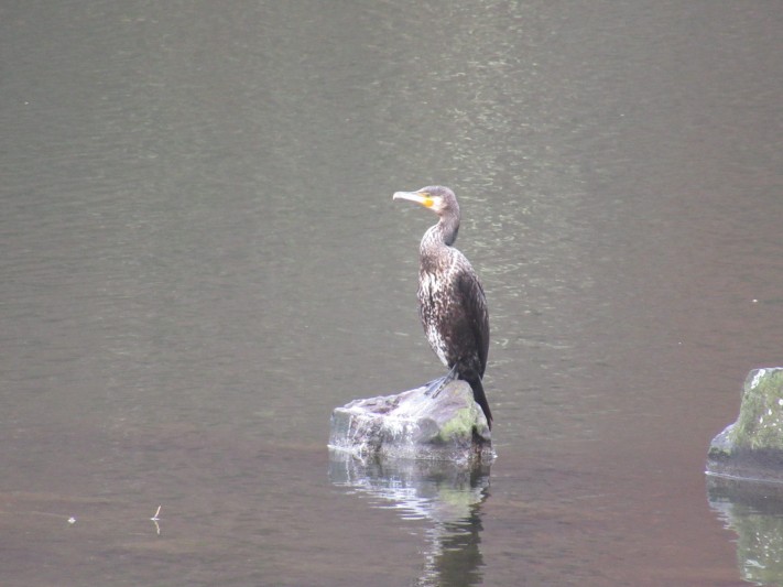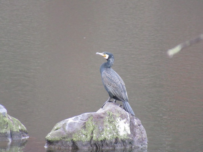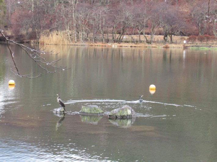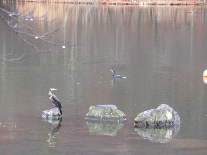 小雨の蓼科湖 今朝は カワウ2羽です。