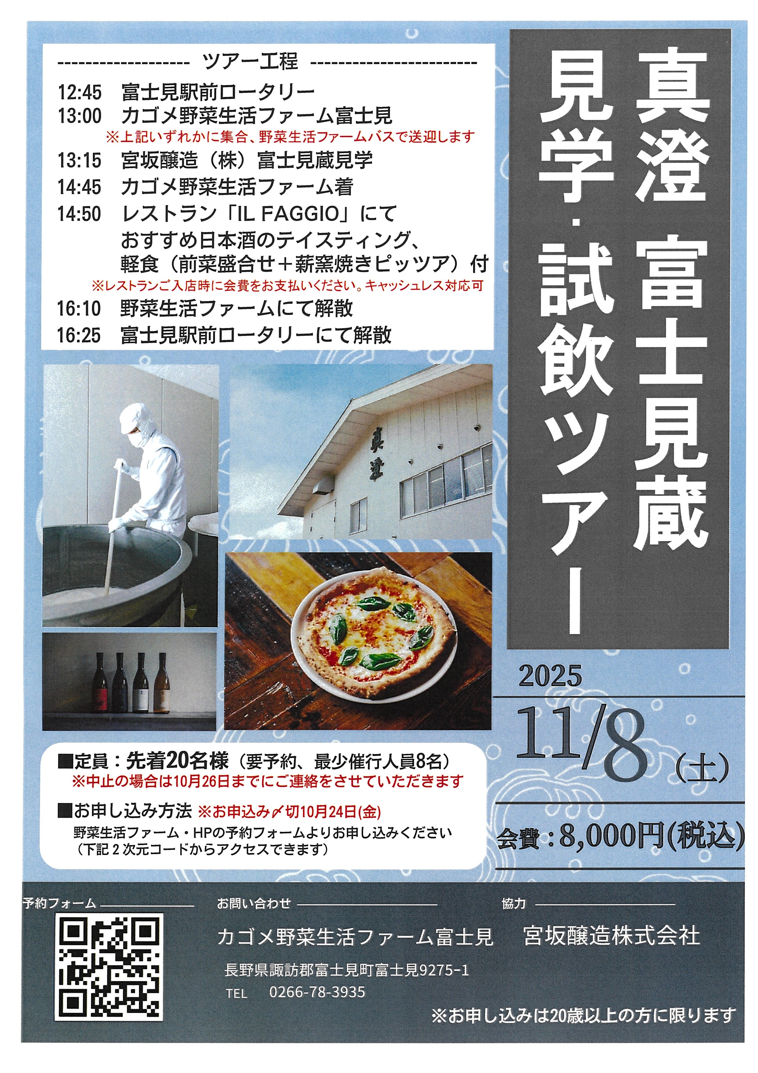 真澄富士見蔵の見学・試飲ツアーが開催されます。