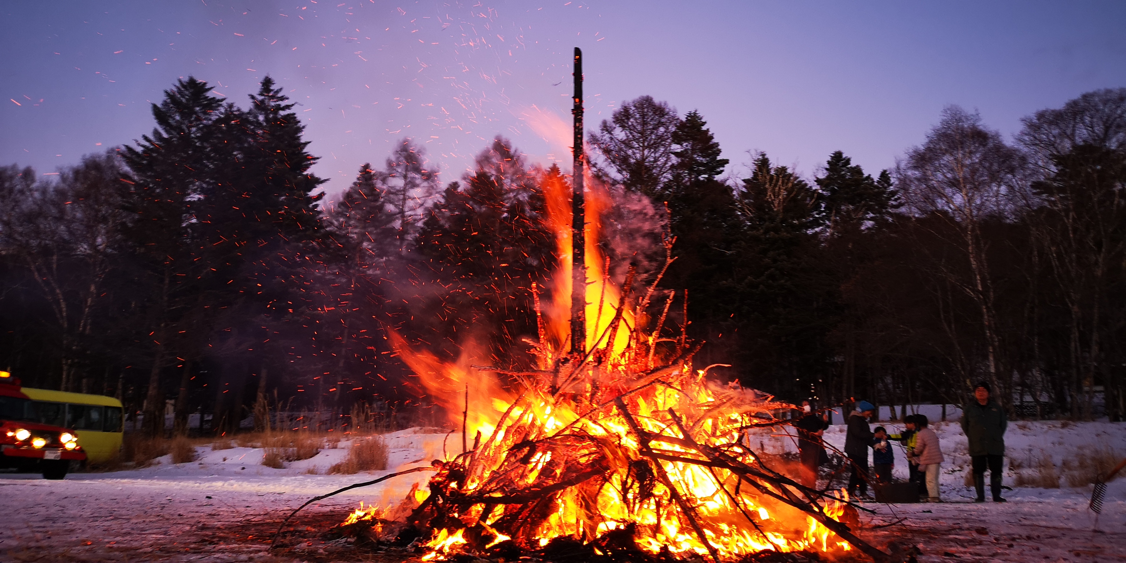 お正月飾りや書初めを燃やし、年神様をお見送りします