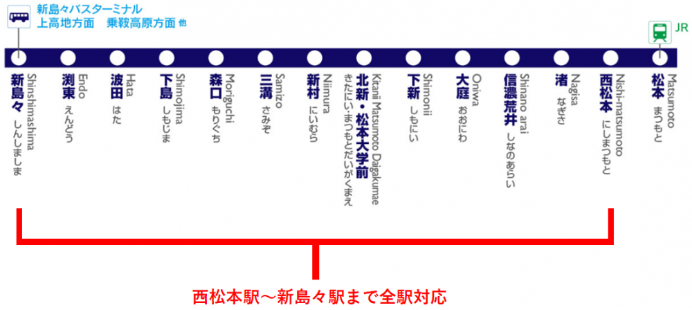 西松本駅 渚駅 信濃荒井駅 大庭駅 下新駅 北新・松本大学前駅 三溝駅 森口駅 下島駅 渕東駅