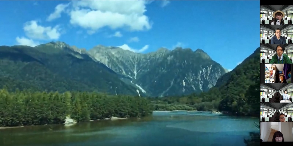 09:40~ Zoomミーティングルーム開放・受付開始(10:00までにご集合ください) 10:00~ ご参加者確認・当日のご案内 10:10頃~ 新島々~上高地バスターミナル(事前収録動画をバスガイドがご案内) 11:00頃~ 上高地・河童橋付近を現地ライブ中継 11:30頃~ 記念撮影等 12:00頃 終了 |