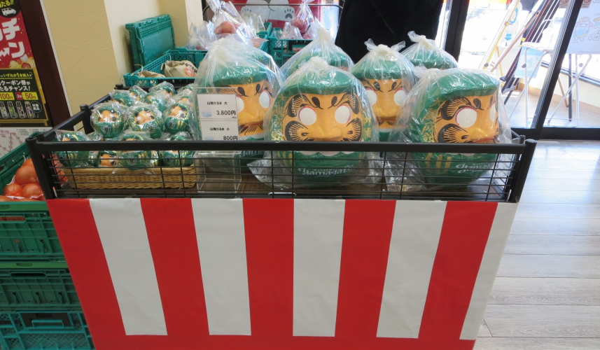 サッカーチーム「松本山雅」仕様のだるま2種を、梓川サービスエリア上り線にて販売中です。