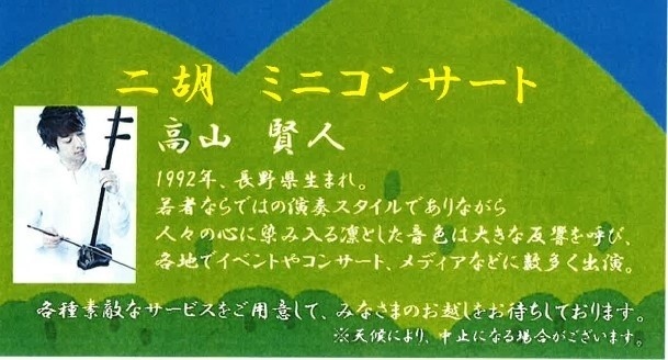 姨捨サービスエリア上り線では、観月祭にあたり中国の伝統的な楽器である「二胡」のミニコンサートを開催いたします。