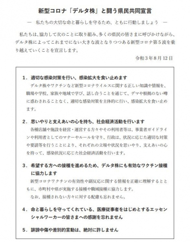 「新型コロナ『デルタ株』と闘う県民共同宣言」