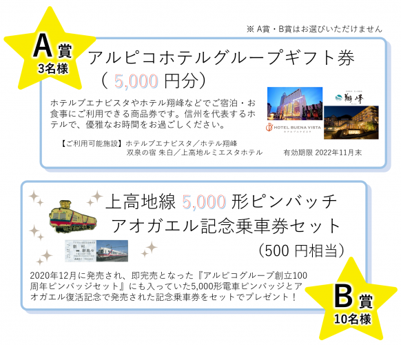 ・本企画は、アルピコ交通株式会社(以下、当社)が主催するプレゼントキャンペーン企画です。