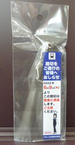アルピコ交通では、渕東なぎさ踏切おしらせ看板アクリルキーホルダー2種を発売します。