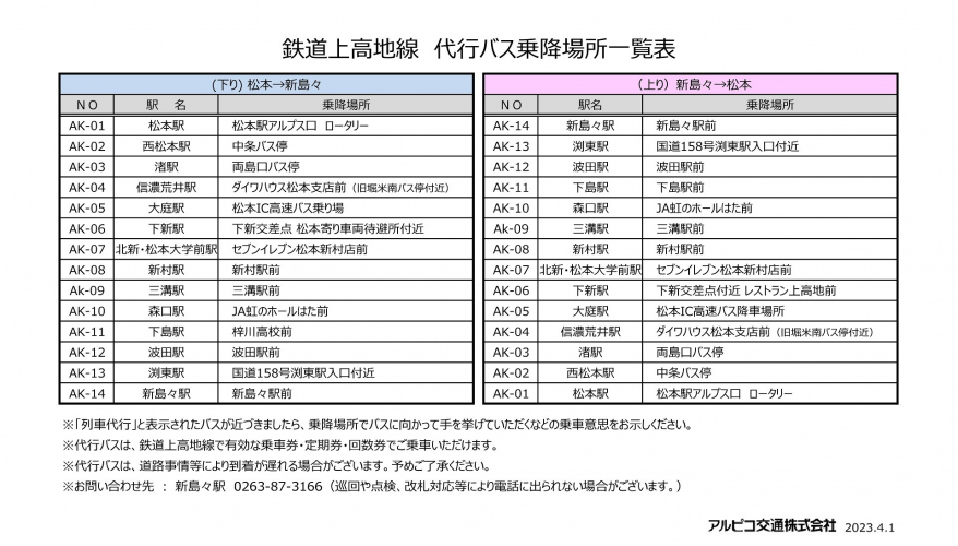 【鉄道】列車代行バスのりばのご案内(2023/4/1更新)