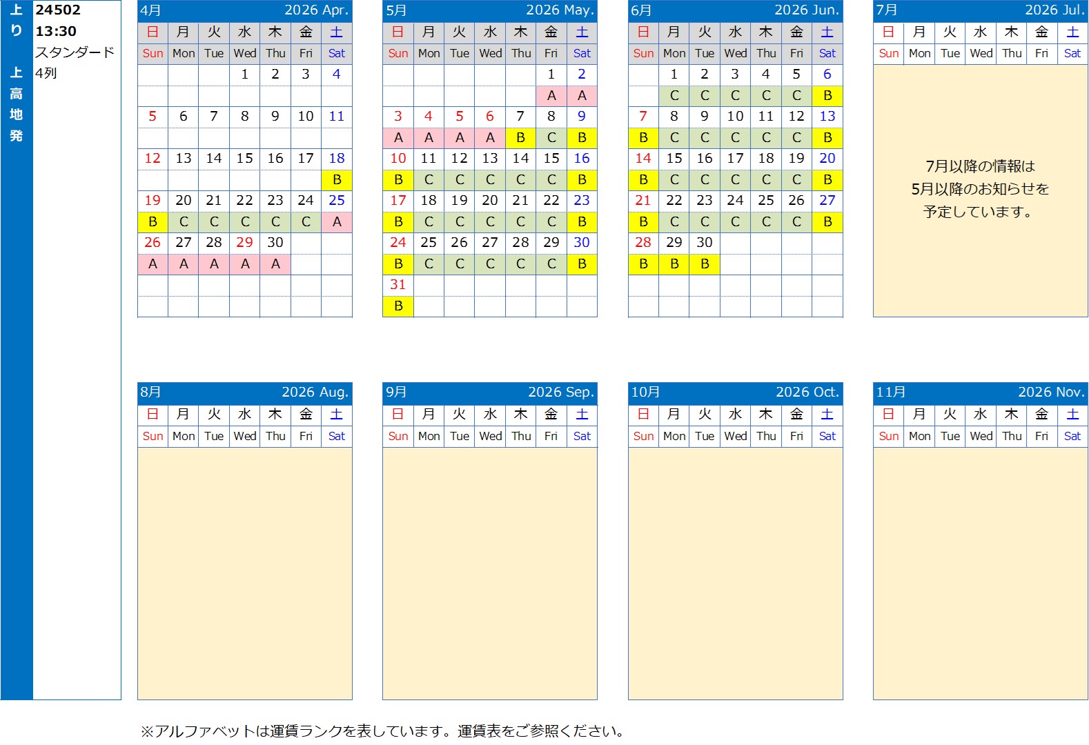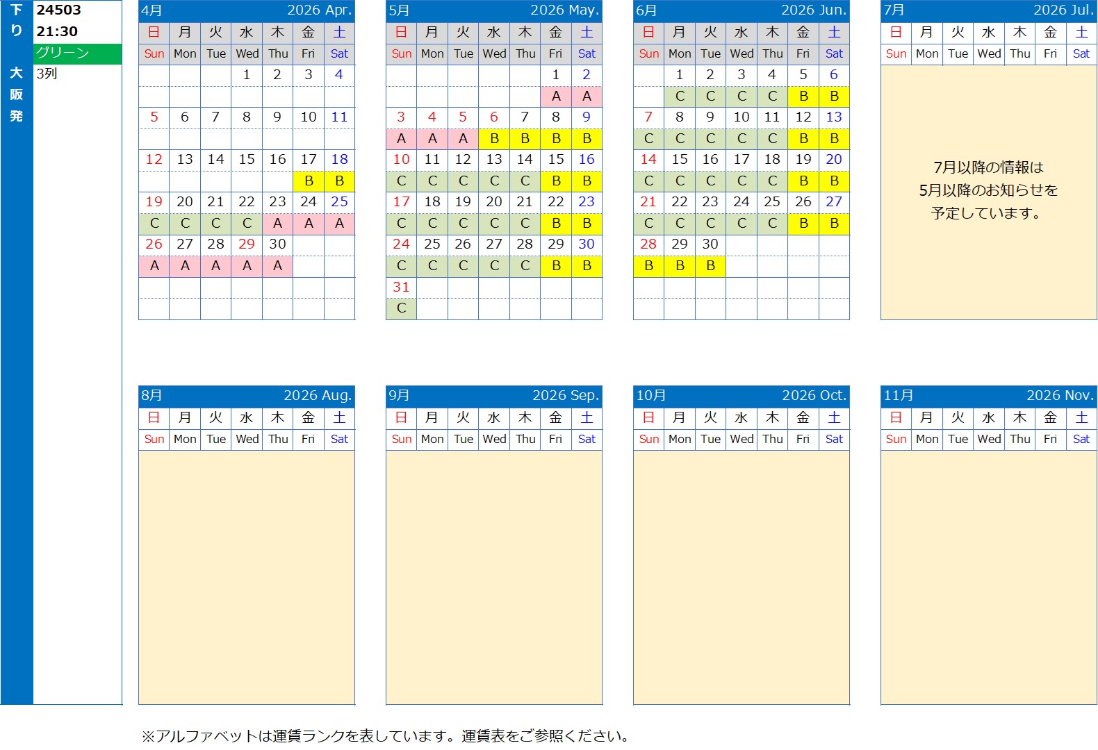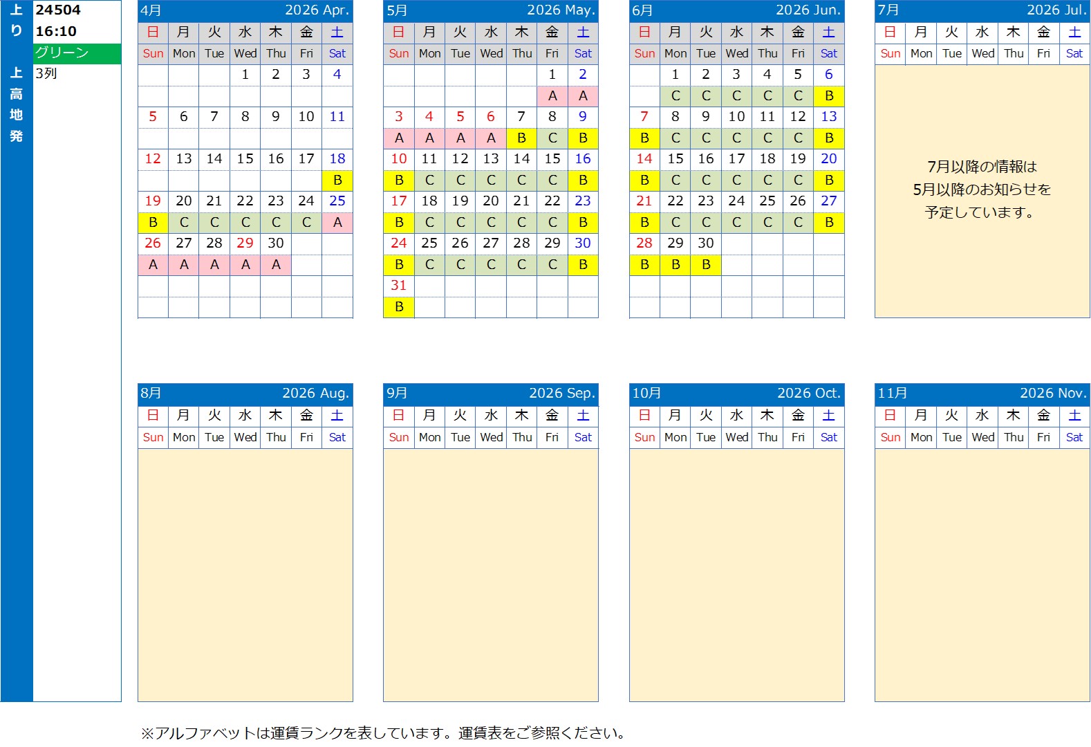 運行カレンダー
