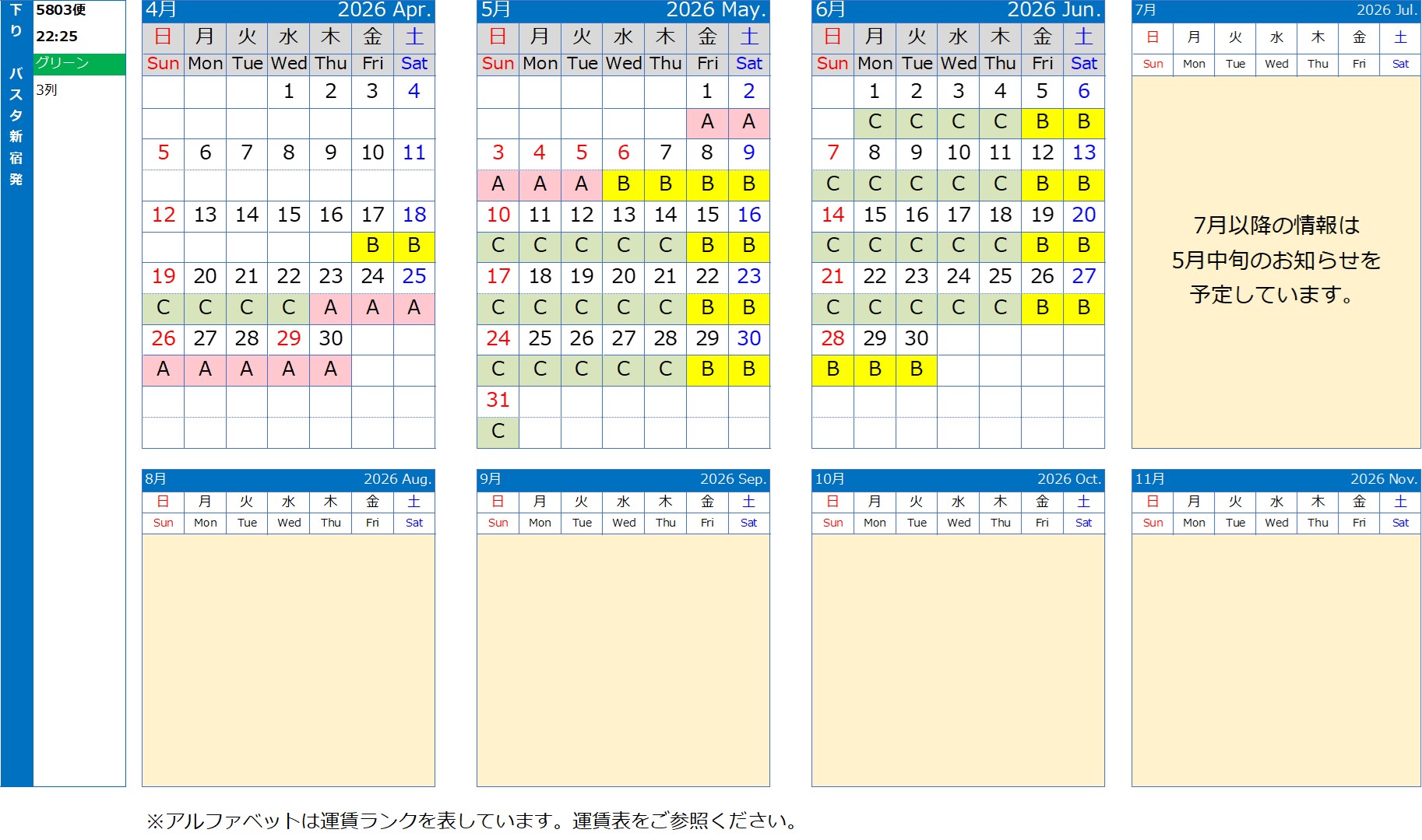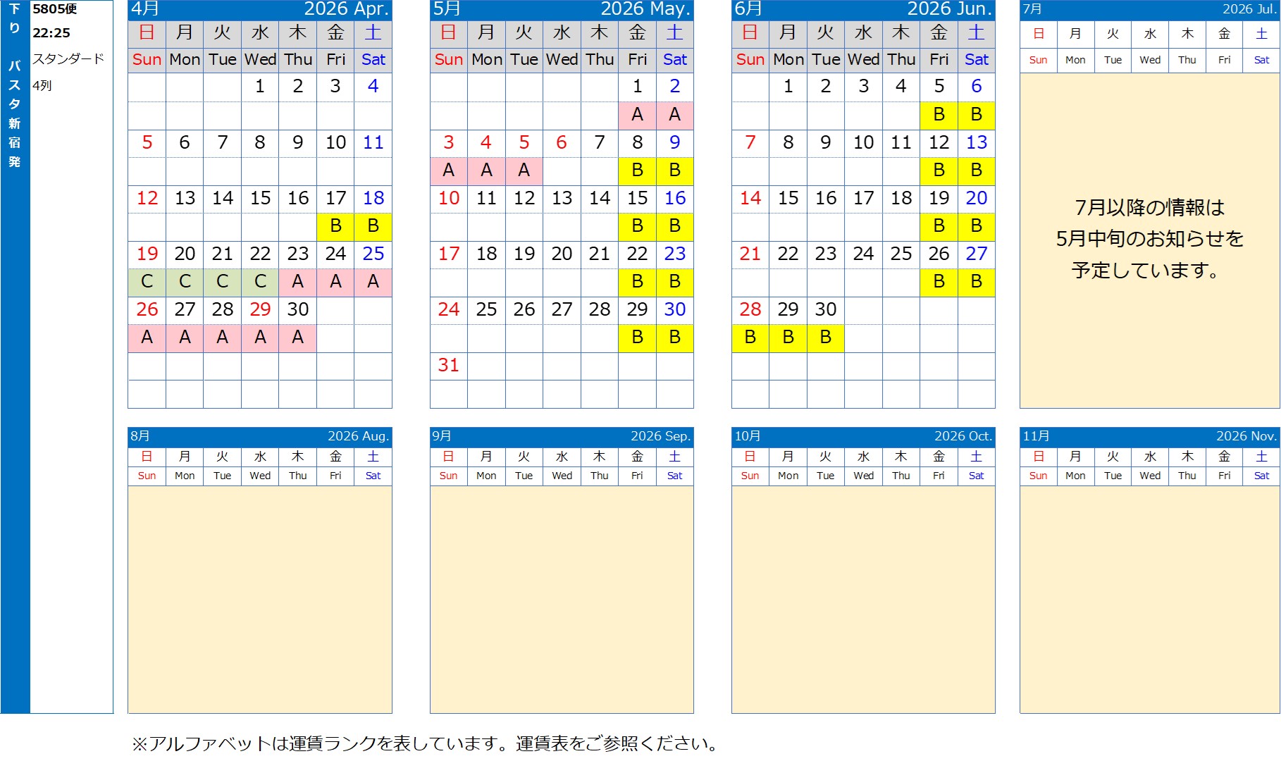 ・高速乗合バスを貸切委託運行する場合があります。貸切委託により運行する場合、時刻表ごとに記載します。